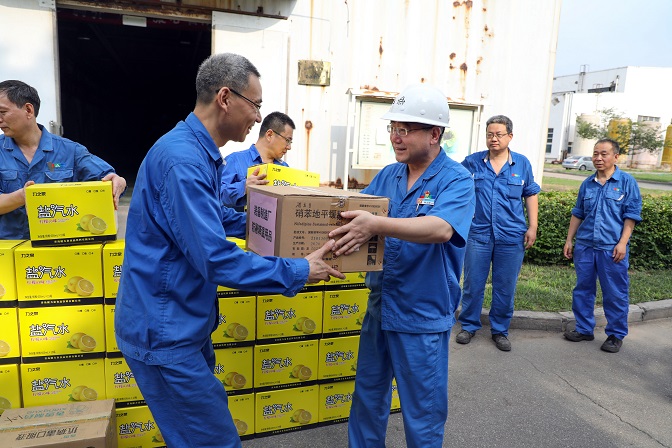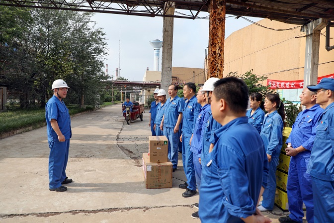 在慰問(wèn)現(xiàn)場(chǎng),陳總向奮戰(zhàn)在高溫一線的廣大干部職工致敬,對(duì)大家在炎炎酷暑中依然堅(jiān)守崗位、為企業(yè)發(fā)展貢獻(xiàn)力量的無(wú)私奉獻(xiàn)精神表示感謝,并叮囑大家制定合理作業(yè)時(shí)間,減少高溫時(shí)段作業(yè),做好職業(yè)健康防護(hù)。陳總強(qiáng)調(diào),大暑小暑,上蒸下煮,眼下正值高溫酷暑,對(duì)于生產(chǎn)一線的職工來(lái)說(shuō),是體力和毅力上的艱難挑戰(zhàn),各單位要把防暑降溫工作作為夏季重點(diǎn)工作來(lái)抓,切實(shí)關(guān)心職工身體健康和勞動(dòng)安全,把勞動(dòng)安全保障措施落實(shí)到每個(gè)車(chē)間、每個(gè)班組、每個(gè)高溫崗位和每名職工,確保廣大職工身心健康和平安度夏。最后,陳總鼓勵(lì)廣大職工要保持高昂的干勁,發(fā)揚(yáng)艱苦奮斗的精神,以飽滿的工作狀態(tài)投入工作,全力以赴完成各項(xiàng)生產(chǎn)經(jīng)營(yíng)任務(wù)。